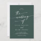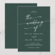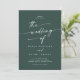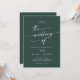 Este boho chic emerald verde o casamento do convite é perfeito para um casamento minimalista. O design verde boêmico moderno da floresta de caçadores de escuros e modernos apresenta uma caligrafia rústica simples com um estilo único, porém clássico.