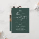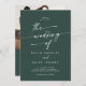 Esta foto verde-esmeralda boho e o convite de casamento com código QR é perfeito para um casamento minimalista. O design verde boêmico moderno da floresta de caçadores de escuros e modernos apresenta uma caligrafia rústica simples com um estilo único, porém clássico. Personalize a parte de trás do seu convite de casamento com a sua foto de noivado favorita. Inclua um código QR para convidado para RSVP fácil, ver detalhes ou ambos.
