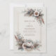 Invite your guests to a celebration of bohemian romance and natural elegance with this exquisite wedding invitation. The design features a stunning central thin gold rectangular frame set against a soft, textured off-white backdrop. The corners are beautifully anchored by asymmetric clusters of soft, layered beige and brown feathers and muted dusty rose and mauve pink flowers. The dominant lower cluster includes a large white Protea-style bloom resting on an intricate, circular gold mandala scrollwork motif. The entire aesthetic beautifully blends cool, earthy textures with opulent metallic accents, perfectly setting the stage for a unique, rustic, or desert-themed wedding. This invitation card is ideally suited for a bohemian style wedding, a chic outdoor engagement celebration, or an elegant fall or desert reception. It would also perfectly suit a sophisticated rustic-themed party or a serene, elegant vow renewal ceremony.