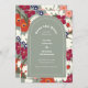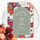 This boho chic floral is so on trend for the coming year. Colorful flowers of burgundy, burnt orange, sage green and navy are retro and fun. The QR code makes it easy for your guests to get the details for your special day