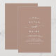 Este convite para casamentos casuais, neutro, é perfeito para um casamento minimalista. A design boêmica moderna de tom castanho bege apresenta uma caligrafia rústica simples com um estilo único, mas clássico.