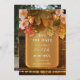 Um romântico Salve a Data com tema de vinho, com uvas e rosas coloridas de pêssego em um artístico dourado com fundo de barril de vinho com luzes festivas de cordas. Se você não quiser usar sua própria foto no verso, você pode apagar a foto de modelo e revelar uma imagem de rosas no fundo do barril de vinho. Bonita para um casamento ou aniversário de vinhas planejado.