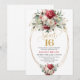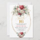 Convites Boho Chic Red White Gold Floral Sweet 16 Birthday