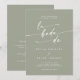 Este boho chic sage verde QR code O convite de casamento espanhol é perfeito para um casamento minimalista. A moderna design boêmica verde-luz neutra apresenta uma caligrafia rústica simples com um estilo único, mas clássico. Inclua um código QR na parte traseira do seu convite de casamento para que o convidado possa facilmente RSVP, ver detalhes ou ambos.