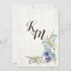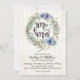 Design de convite de casamento russo da boêmia com suculentos, folhas de eucalipto, e coroa de galhos com fundo branco lavado de madeira e monograma.