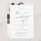 Este convite para casamento de boho chic e foto branca e código QR é perfeito para um casamento minimalista. A design boêmica azul-verde e branca apresenta uma caligrafia rústica simples com um estilo único, porém clássico, que lembra a praia costeira e um cruzeiro oceânico de verão. Personalize a parte de trás do seu convite de casamento com a sua foto de noivado favorita. Inclua um código QR para convidado para RSVP fácil, ver detalhes ou ambos.