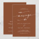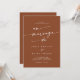 Este boho chic terracotta QR code convite de casamento francês é perfeito para um casamento minimalista. A design boêmica laranja moderna, queimada pela terra, apresenta caligrafia rustica simples com um estilo único, mas clássico. Inclua um código QR na parte traseira do seu convite de casamento para que o convidado possa facilmente RSVP, ver detalhes ou ambos.