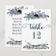 Boho Chic Verde-Menta e Azul-Marinho Floral e Penas com Rabo Curvo e Listras de Letras à Mão Números de Mesa de Casamento. Verifique minha loja para ver o conjunto completo de casamento para este design!