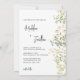 Design apresenta flores brancas e minimalistas selvagens com caligrafia manuscrita.