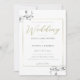 Ramificações de orquídeas brancas, desenhadas à mão num lápis de grafite, se entrelaçam neste convite de casamento simples, mas sofisticado, elegante e chic, que apresenta uma delicada e clássica estrutura de ouro. A tonalidade do ouro na cor do escrevendo dá a isso um brilho festivo, mas subjugado.