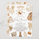 Este convite para chá de fraldas de "drive-by-drive-thru" neutro em ambas as partes apresenta roupas de bebê, como um móvel com um urso, rompante, calças, urso/animal recheado, jaqueta, botas, fralda, bib, garrafa e pirâmide. O verso apresenta um fundo bege/bronzeado claro com padrões de brinquedos para bebês. Personalize-o para as suas necessidades. Você pode encontrar produtos correspondentes na minha loja.