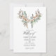 Bolas de algodão de seda rústica e folhas de eucalipto, marrom e poeirentos, adiaram o convite para o casamento com penas e chifres de vassoura. Ideal para qualquer tema ou casamento de jardim. A foto no verso é opcional. Se você a remover, role para baixo até a parte inferior de "Personalizar este modelo" e clique em "Editar usando a ferramenta Design". Na Ferramenta Design, você pode editar, dimensionar, excluir ou mover qualquer texto ou design elementos desejados.