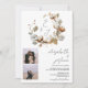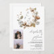 Convide convidados para o dia especial com esta encantadora design de Casamento Boho Cotton Wreath Foto Rustic Initials. Adorado com uma bela coroa de chumbos de algodão delicados e folhagem rústica, este convite oferece dois pontos perfeitos para mostrar as suas preciosas fotos de casal. É uma mistura ideal de encanto natural e personalização elegante, definindo um tom caloroso e convidativo para sua celebração. Altere facilmente todos os detalhes e iniciais do evento para tornar este anúncio de casamento exclusivo perfeitamente seu