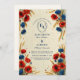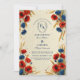 Um romântico quadro floral enterrado com papoilas vermelhas e flores azuis rodeia seus detalhes de casamento personalizados em um fundo do estilo pergaminho. Perfeito para o verão, campo ou casamentos de inspiração rústica, este design eterno combina flores vibrantes com encanto de safra. Personalize com os seus nomes, monograma e data para uma manutenção única que captura a beleza da sua celebração.