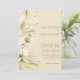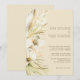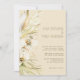 Trendy watercolor floral branco, palma tropical bronzeada, folhagem do deserto terrestre, e convite para o casamento de erva pampas com tipografia de estilo moderno sobre um fundo creme. +++++ Adequado para um jardim boêmico de verão. fazenda rústica ou destino de praia elegante casamento contemporâneo elegante.