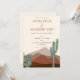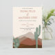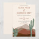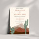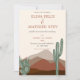 Este convite para casamento no deserto do boho apresenta um layout limpo e minimalista com tipografia elegante em tons de terra quente. A design destaca uma paisagem serena do deserto com montanhas em camadas em tons de terracota e marrom macio, complementada por acentos cactos desenhados à mão. Ele captura um equilíbrio de beleza natural e simplicidade moderna, perfeito para uma celebração inspirada no deserto.