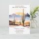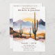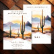 Ponha o tom para o seu dia especial com este convite de casamento do deserto de vô. Apresentando uma paisagem aquosa com cactos torrenciais e um pôr do sol ouro, esse design capta o charme rústico do Sudoeste. A tipografia elegante destaca os nomes do casal, enquanto o verso inclui uma citação sincera e um monograma personalizado. Perfeito para casamentos ocidentais, desérticos ou inspirados na Arizona, este convite combina a beleza natural com a sofisticação do eterno.