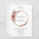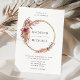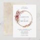 Um convite para casamento floral único e elegante que inclui os seus nomes rodeados por uma falso estrutura de folha de ouro com um buquê de flores de cor d'água, roxas, pincéis e corais e folhagem esmagadora em tons roxos de bege e terra castanho. Personalize os convites florais adicionando detalhes como data de casamento, hora, local e informações de recepção. O convite reverte para um fundo de aquarela bege claro.