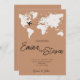 Um cartão de convite para casamento de viagem do mapa de destino é um design de convite exclusivo que apresenta um mapa que destaca a localização do casamento. Ele combina elementos de temas viagem, como marcos, rotas ou ingressos, com os detalhes do casamento, criando uma maneira aventureira e elegante de convidar convidados para um casamento de destino.