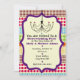 Um convite de festas de aquecimento doméstico com um fundo na frente e atrás de bolinhas em vários tamanhos e um esquema de cores inspirado pela boemia. Chadelier com cores correspondentes pende do topo. Personalize o quadro dentro roxo de texto roxo e preto com detalhes da sua ocasião.
