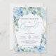 Convites Boho Dusty Blue Floral Dourado Geométrico Engate