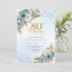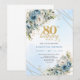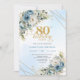 Convites Boho Dusty Blue Floral Gold 80th Birthday Invite