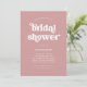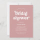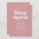 Este chá de panela simples e boho apresenta tipografia branca e retrô sobre um fundo cor-de-rosa rosa empoeirado.