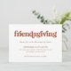 Este simples convite de janto Boho Ação de Graças apresenta uma tipografia retrô aterrorizada que diz "amizade" sobre fundo branco.