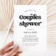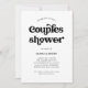 Este convite para chás de casais de casamento simples e preto-e-branco apresenta a tipografia retrô em um fundo branco.