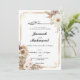 Este maravilhoso convite de casamento muçulmano apresenta um sofisticado fundo branco com delicados sotaques geométricos de ouro e arranjos florais suaves em tons quentes e neutros. A design inclui a elegante caligrafia árabe no topo, seguida de uma introdução islâmica significativa, fazer-a uma combinação perfeita de tradição e elegância moderna. Ideal para casais à procura de um convite para casamento refinado e eterno.