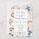 Convites Boho enquadra roupas de bebês e brinquedos neutros