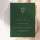Convide sua família e amigos mais queridos para celebrar suas elegantes celebrações modernas de casamento com este convite de casamento teórico boho evergreen. Este design apresenta linhas simples impressionantes em um arranjo floral delicado. Personalize este convite de casamento inspirado na boêmia adicionando nomes, data, hora, local e outros detalhes do evento. Este convite para o casamento floral verde é adequado para todo o ano, mas é especialmente luxuoso durante o outono e as estações de outono.