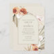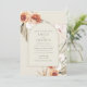 Este belo outono Boho convite para o casamento floral é impresso em fundo de marfim com o seu texto impresso num arco. O design floral de cor de outono é inspirado pelas flores em floração, criando uma sensação bela e orgânica. Ponha o tom para uma celebração mágica de casamento Boêmia com este convite encantador.