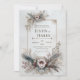 Invite your guests to a celebration of bohemian romance and natural elegance with this exquisite wedding invitation. The design features a stunning central gold rectangular frame with delicate corner dotting and stylized accents, set against a soft, textured off-white backdrop. The frame is beautifully anchored by two dramatic clusters of soft, layered beige, gray, and dusty blue feathers, intertwined with pale pink, mauve, and deep pink center flowers. Intricate gold scrollwork and a mandala-like medallion anchor the bottom cluster, adding an opulent, antique luxury accent. This aesthetic perfectly blends cool, earthy textures with opulent metallic accents, perfectly setting the stage for a unique, stylish, or desert-themed wedding. This invitation card is ideally suited for a bohemian style wedding, a chic engagement celebration, or an outdoor fall reception. It would also perfectly suit a sophisticated desert-themed party or a serene, elegant vow renewal ceremony. The card's captivating blend of pristine florals and a moody, monochromatic backdrop ensures it is versatile for any solemn ceremony, corporate gala, or refined birthday announcement.