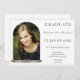 Boho Feather Frame Photo Graduation Open House Invitation apresenta um quadro de arco e colocação de fotos do formando, adornada com penas boêmicas. Adicione fotos, graduação e detalhes da casa aberta para personalizar. A cor de fundo no verso do convite pode ser alterada para complementar a foto ou para adicionar a cor da sua escola.