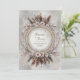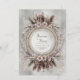 Invite your guests to a celebration of bohemian romance and natural elegance with this exquisite wedding invitation. The design features a stunning central white circular frame encircled by a lavish wreath. This wreath is composed of soft, layered beige and brown feathers, delicate pale pink daisy-like flowers, and intricate sprigs of white and copper-toned foliage. The frame itself is highlighted by delicate gold inner detailing that suggests antique craftsmanship, all set against a subtle, textured gray and white backdrop. This aesthetic beautifully blends earthy, organic elements with classic, opulent accents, perfectly setting the stage for a unique, stylish, or desert-themed wedding. This invitation card is ideally suited for a bohemian style wedding, a chic engagement celebration, or an outdoor reception. It would also perfectly suit a sophisticated fall or desert-themed party or a serene, elegant vow renewal ceremony. The card's captivating blend of pristine florals and a moody, monochromatic backdrop ensures it is versatile for any solemn ceremony, corporate gala, or refined birthday announcement.