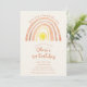 A cute first 1st birthday invitation, featuring a boho watercolor rainbow and sun. Designed by Thisisnotme©