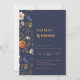 Um rústico design floral pintado a mão com botânicos naturais adora este convite de casamento de inspiração nacional. É um convite elegante impresso em uma fonte Abrilfatface de cor ferrugem. Edite facilmente a modelo para se adequar ao seu evento. A carta de volta tem uma cor sólida e os nomes dos casais de casamento. Edite facilmente o modelo para a noiva e o nome do noivo e os detalhes do casamento. O convite agrupou duas fontes de serifa tradicionais, criando um olhar elegante e moderno. Veja nossa coleção para mais produtos de suite de casamento de excelentes neste tema. Convite Floral Blue Rust Wedding. As cores principais são o Marinho Blue hex #2B324B e Terracotta hex #E09760.