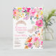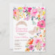 Hora de comemorar sua quinceanera no estilo! Bohemian bold floral aquarela mis Quince convite com flores brilhantes pintadas manualmente rosa, laranja, amarelo, folhas verdes de eucalipto e folhagem de índigo com uma letra moderna de escova. Convite perfeito para festa de aniversário 15 para Primavera e verão, para tema de festas de jardim e ao ar livre. Apresentando uma ilustração da coroa rosa dourada da princesa tiara