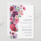 Boho Floral Convidado para Casamento Colorido. O romance delicado encontra elegância eterno neste maravilhoso convite para o casamento, apresentando um buquê lateral pintado à mão de rosas exuberantes, anêmonas, cosmos, margaridas e delfinio em tons de cor-de-rosa, vermelhos profundos, burgundy, blues e roxo, acentuados com verde-esmeralda e eucalipto. O fundo branco melhora as ricas matizes florais, criando um design sofisticado e encantador. Um padrão de coordenação no verso adiciona um toque refinado, fazer este convite atordoante de todos os ângulos. Personalize facilmente a redação, os estilos de fontes e os tamanhos para corresponder à estética do seu casamento, e misture e combine planos de fundo para criar uma aparência que complementa perfeitamente a sua celebração. Faça uma impressão duradoura com um convite que captura a beleza e o romance do seu dia especial. NOTA: o texto é Marinho Azul para corresponder à coleção, mas pode ser facilmente alterado para se adequar ao seu estilo. - O fundo é branco.