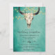 Este Convite de Casamento apresenta um crânio de vaca floral com luzes bonito de cordas de flores amarelas sobre um fundo de turquesa.