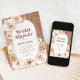Chá de panela de Boho em cor de mocha de terra. Belo design moderno elegante com sotaques botânicos pintados à mão. Apresenta delicados rosas de aquarela, peônias, capim de pampas e fonte de tipografia retrô. Você pode escolher convites impressos e/ou fazer o download instantâneo do modelo digital. Personalize com seus próprios detalhes. Perfeito para uma celebração de chá de panela de na moda boho.