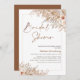 Chá de panela floral boêmico elegante e esmagador em tons naturais, com alguns rosas, erva-pampas e folhas de samambaia. Este convite para a nobre floral também inclui um título de caligrafia moderno e uma fronteira de linha fina.