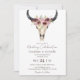Este Convite de Casamento apresenta um crânio de vaca floral com um texto arrojado profundo sobre fundo branco.