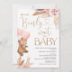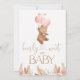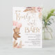Boho Floral da Menina Esperar pelo Convite para Chá de fraldas de Bebê O Bohemian inspirou um convite para chás de fraldas na véspera do tema do bebê com um urso fofo, balões cor-de-rosa, dois arranjos florais cor-de-rosa-suja e pálido com grama-pampas e uma caligrafia moderna em uma textura falsa de ouro-rosa. Ideal para qualquer um que tenha um urso de uma menina com um chá de fraldas de sentimento boêmico.