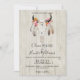Boho floral e pasteleiro de penas convite para casamento de madeiras rústicas de vaca. Estes convites de casamento estilo boêmico apresentam um crânio de vaca com flores e penas.