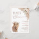 Boho Floral Highland Cow Calf Invitation Chá de fraldas Bohemian inspirou um convite para chá de fraldas com vaca e vitelo, um arranjo floral boho com grama pampas no lado direito do convite e uma imagem serif e caligráfica moderna em uma textura falsa de folha de ouro. Ideal para quem tem um templo de vaca e um chá de fraldas inspirado na boemia. A cor do verso do convite pode ser alterada.