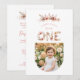 Boho Floral One Word Pink First Birthday Invitation with Romantic Watercolor Effect Wildflowers Frame and Personalized Photo for Baby Girl.