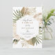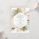 Um convite para chás de fraldas florais de cor aquosa, com estilo bonito de ouro neutro, com cor de ouro neutra, com cor de pérolas cremosa e toques de folhas de palmetto verdes, secas e eucalipto. Uma bonito mistura de script e tipo colorido serif em tons de bronzeado e matizes de pastel de cinza. O verso do convite tem um efeito de linho numa cor verde texturizada de cinza. Estilo rústico da Terra. Perfeito para primavera e verão, deserto ou vibe tropical.
