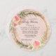 "ROUND SHAPED BOHO Floral Pampas Pink Watercolor Wreath Chá de fraldas Invitation." Única e elegante, Boho inspirou uma coleção de chás de fraldas com grama Pampas. Apresentando uma paleta colorida de pincel e pêssego, esta coroa floral tem uma folhagem tropical adorável e foi projetada graficamente por uma artista e designer internacionalmente licenciada, Audrey Jeanne Roberts, autora.